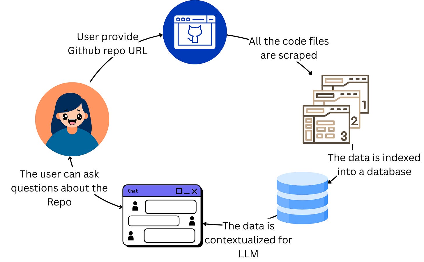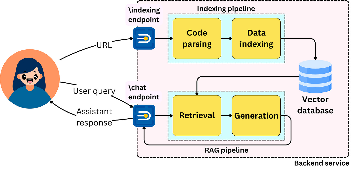 The files of the related repository are scraped and indexed in a vector database