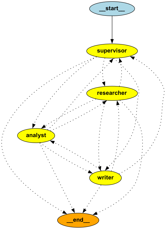 supervisor_app = workflow.compile()There are tasks where LLMs are very unlikely to hallucinate. For example, summarizing text, choosing between a limited set of options, and even writing very simple code. So, the game is about creating agents with very limited control and simple outputs such that hallucinations are as unlikely as possible and utilizing human domain expertise to rule how the different agents can interact with each other.